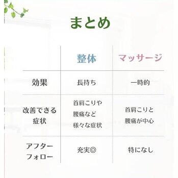 本日は、整体とマッサージの違いを3ポイントで分かりやすくまとめましたので説明します!